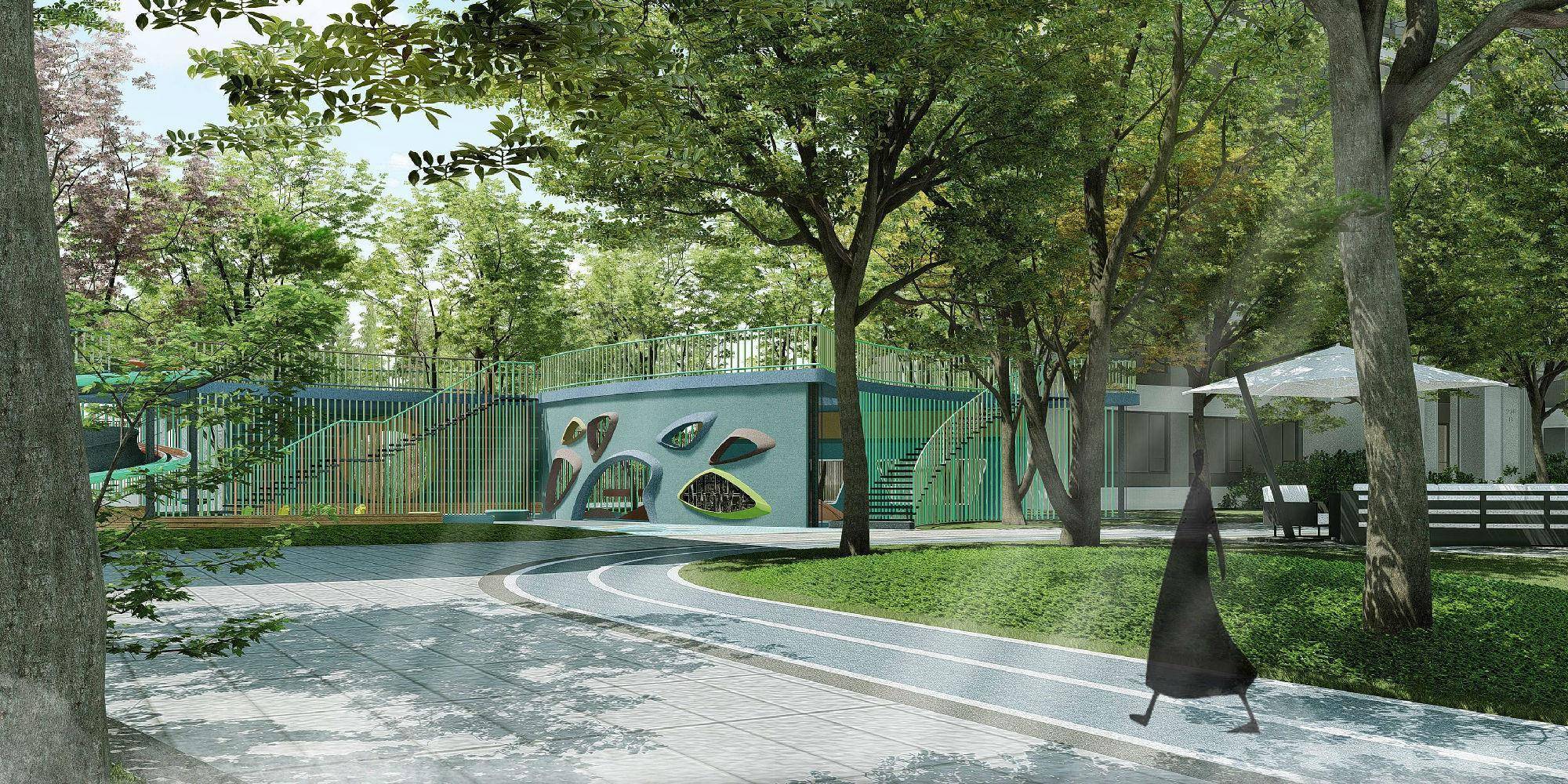 以此为主线串联起其他景观结构,诸如多功能活动区,实现了环道对全园功能的连接,同时增加了运动场地的立体维度。